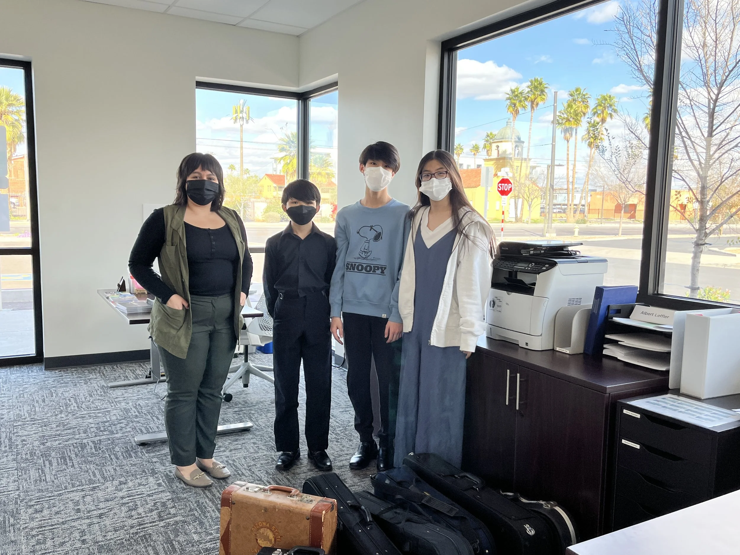 Bridge to Music co-founders, Yuna, Daniel, & Justin Kang with Rosie's House's Administrative Coordinator Clarissa after delivering our first donation batch!